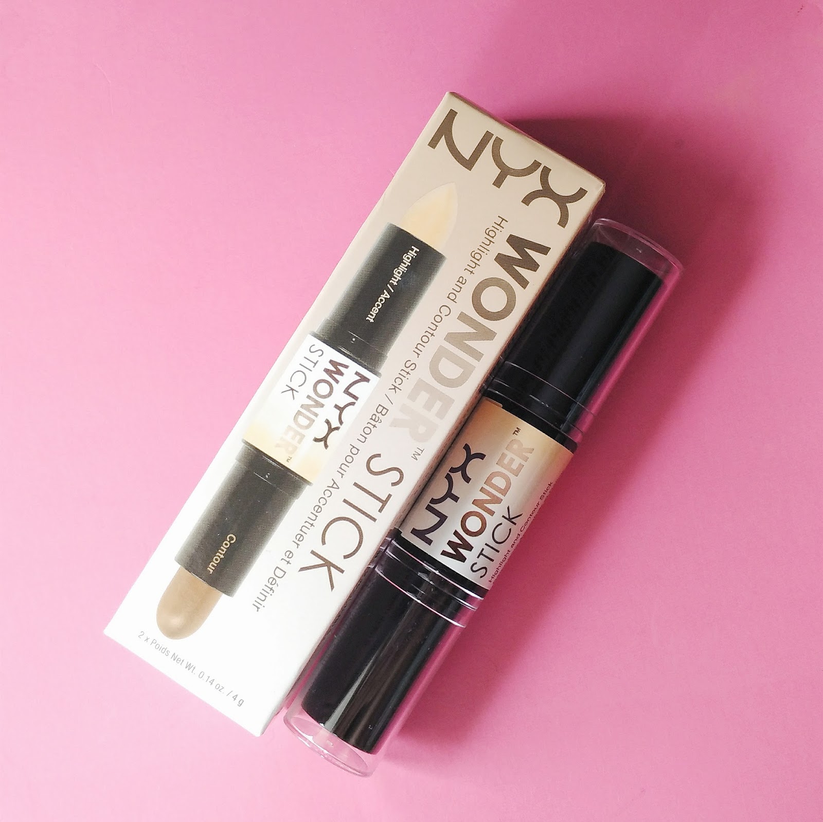 Produk terakhir yang aku dapatkan dari NYX adalah NYX Wonder Stick, produk ini menurutku praktis banget, karena kalian akan mendapatkan 2 produk sekaligus, yaitu contour dan highlighter dalam satu produk.